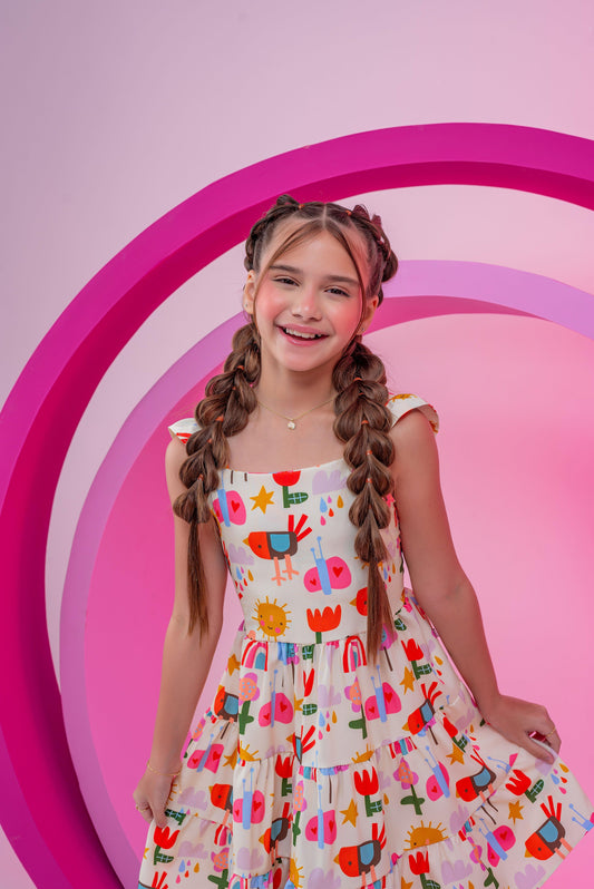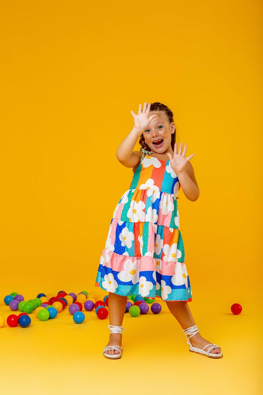 Colorful Daisy Dress for Girls, Ages 2 and 8 – Vibrant Floral Design, Comfortable and Stylish, Perfect for All Occasions
