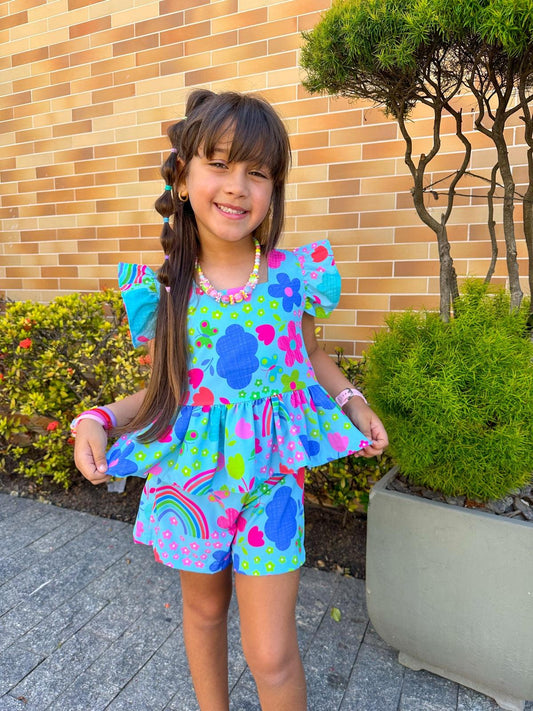 Eloá Blue Rainbow Set for Girls, Ages 2-6 – Vibrant Two-Piece Outfit, Comfortable and Stylish, Perfect for Everyday Wear