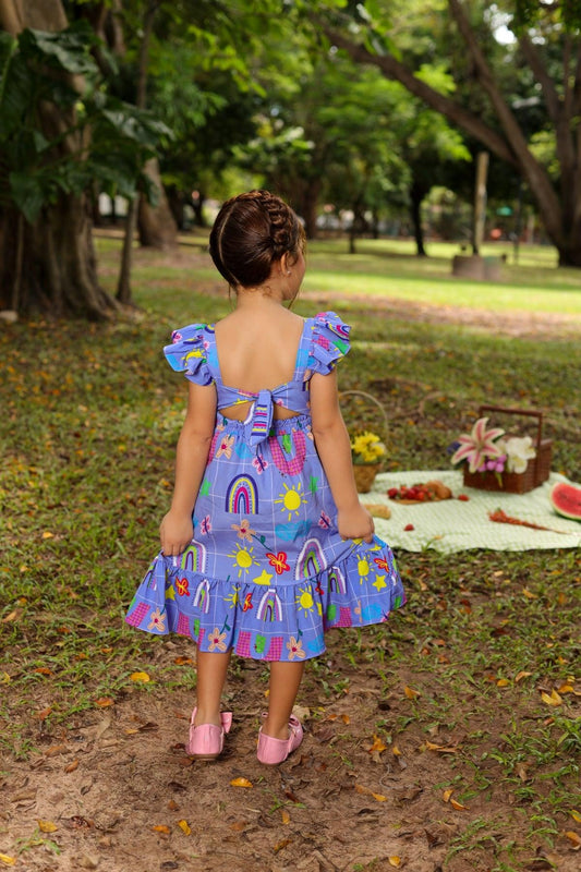 Lilac Rainbow Dress for Girls, Ages 2-8 – Colorful and Comfortable, Perfect for All Occasions